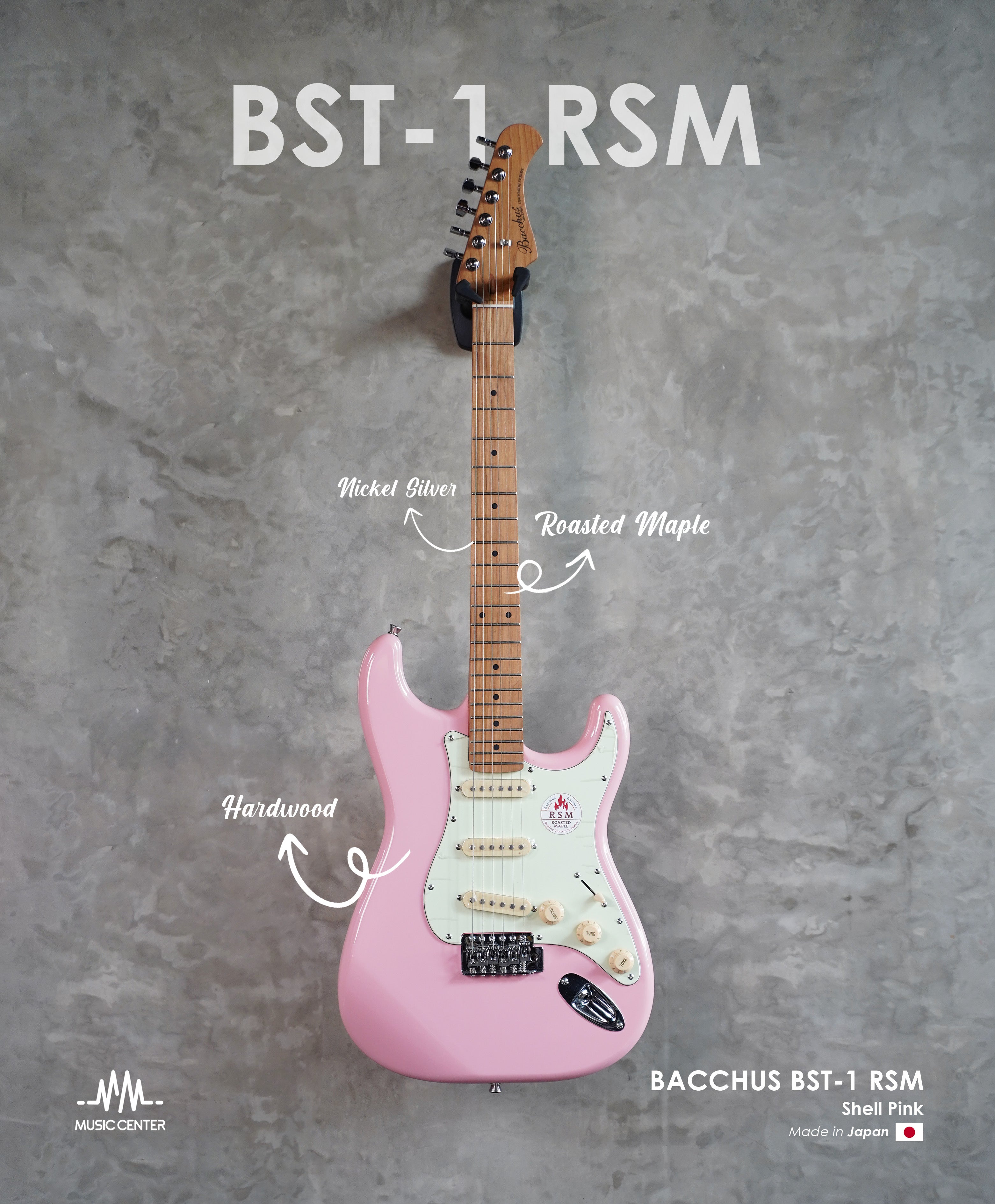 Bacchus UNIVERSE BST1RSM Stratocaster Electric Guitar, Shell Pink