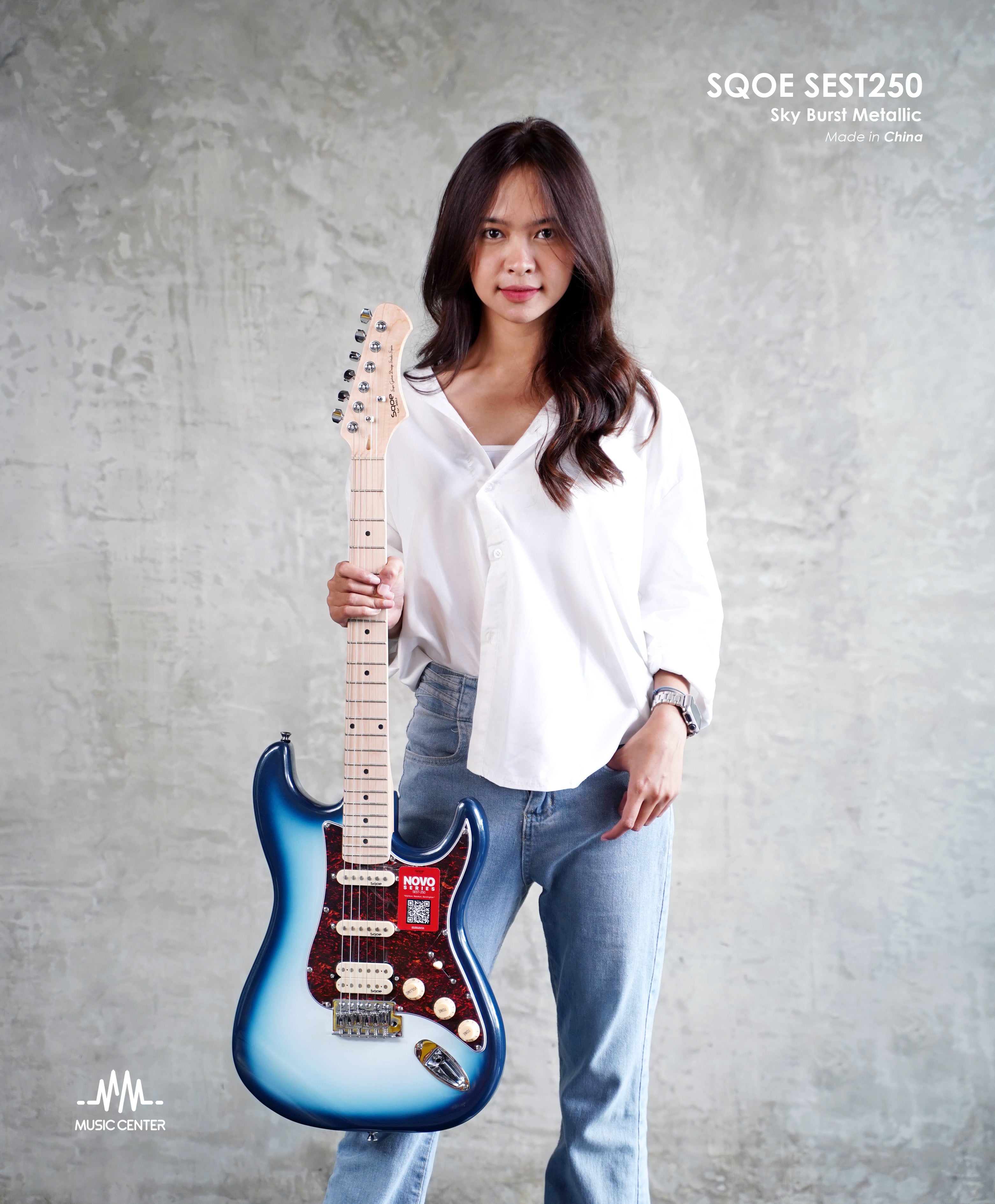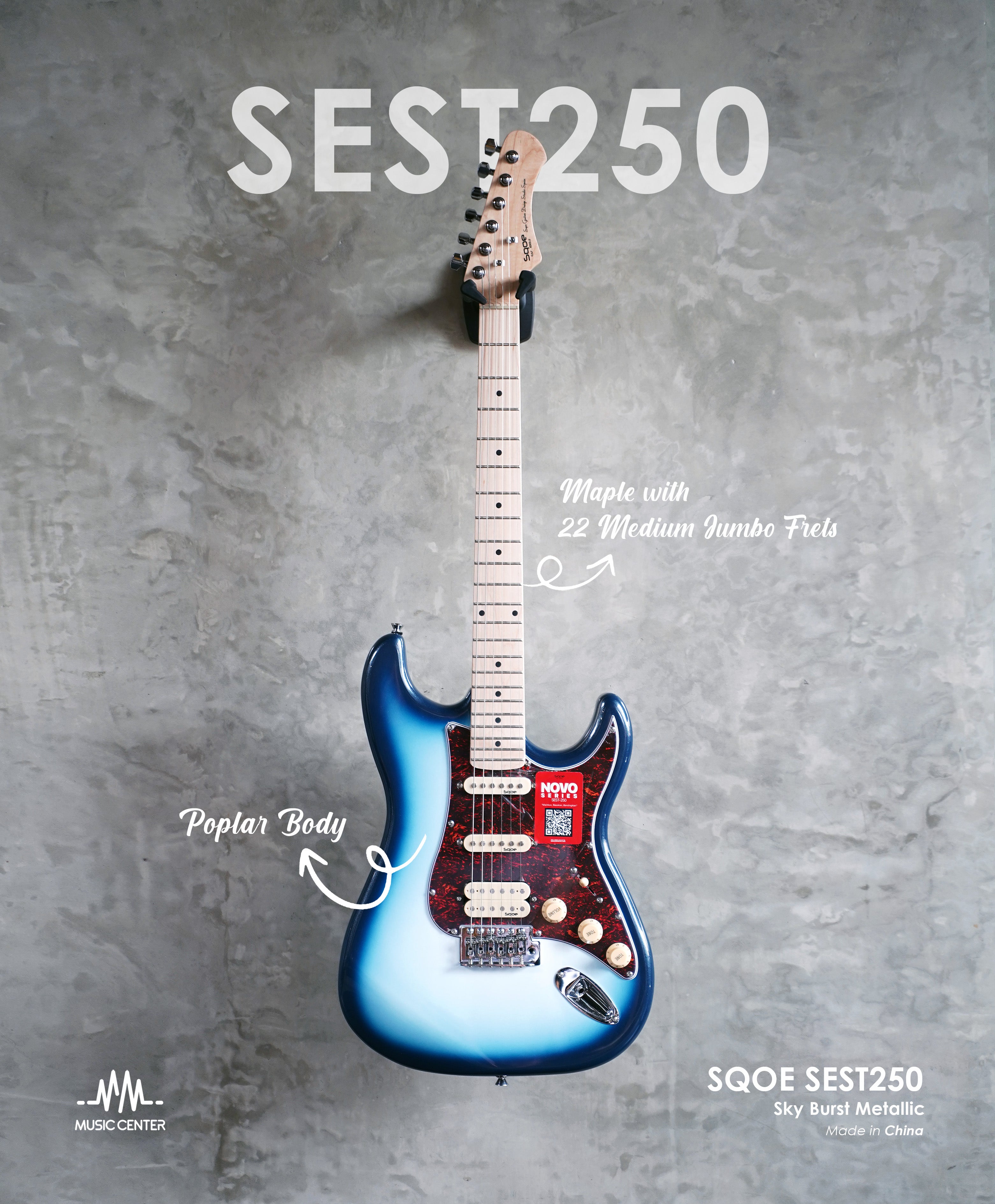 SQOE SEST250 HSS Electric Guitar Stratocaster, Sky Burst Metallic