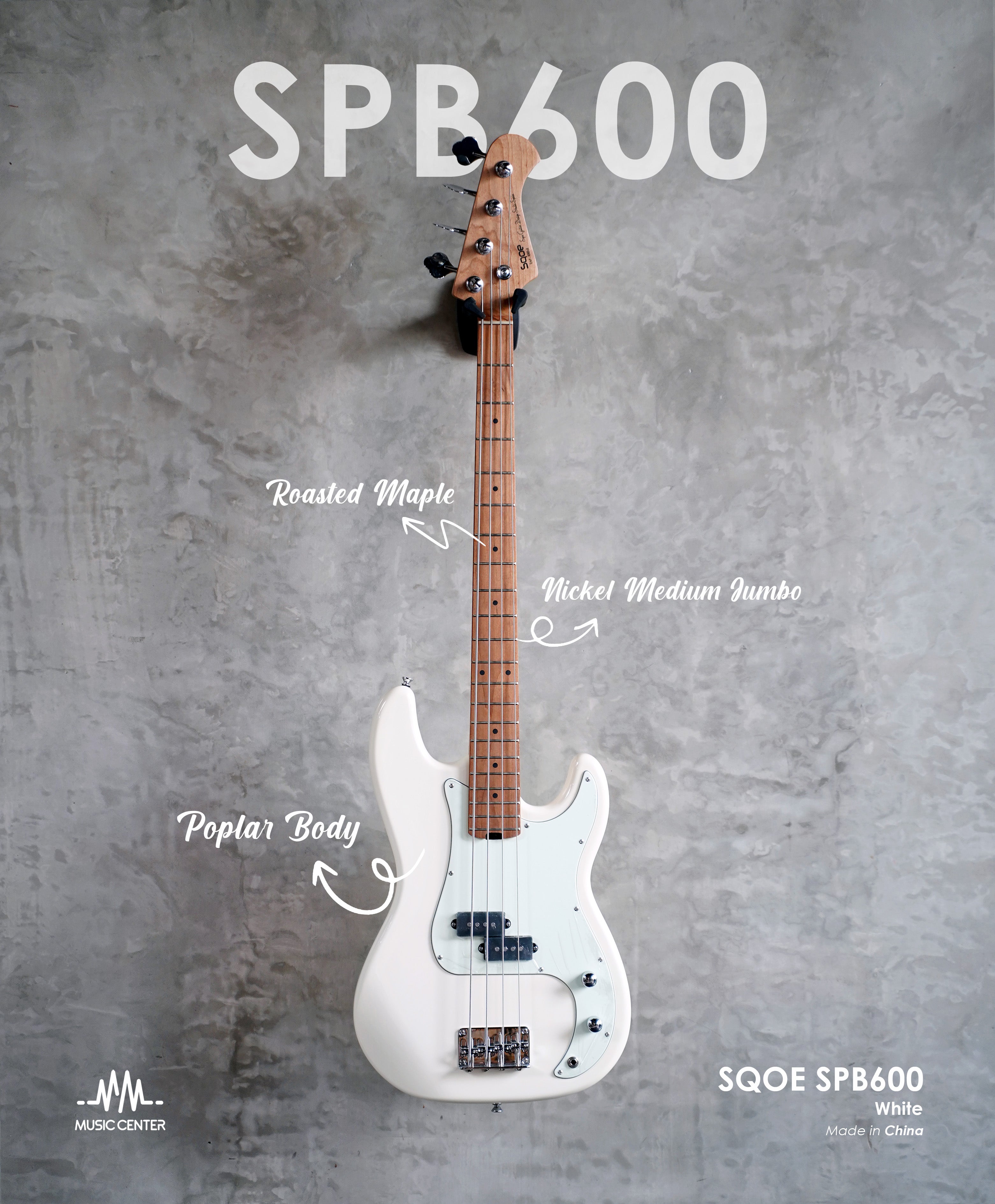 SQOE SPB600 Electric Bass, Olympic White